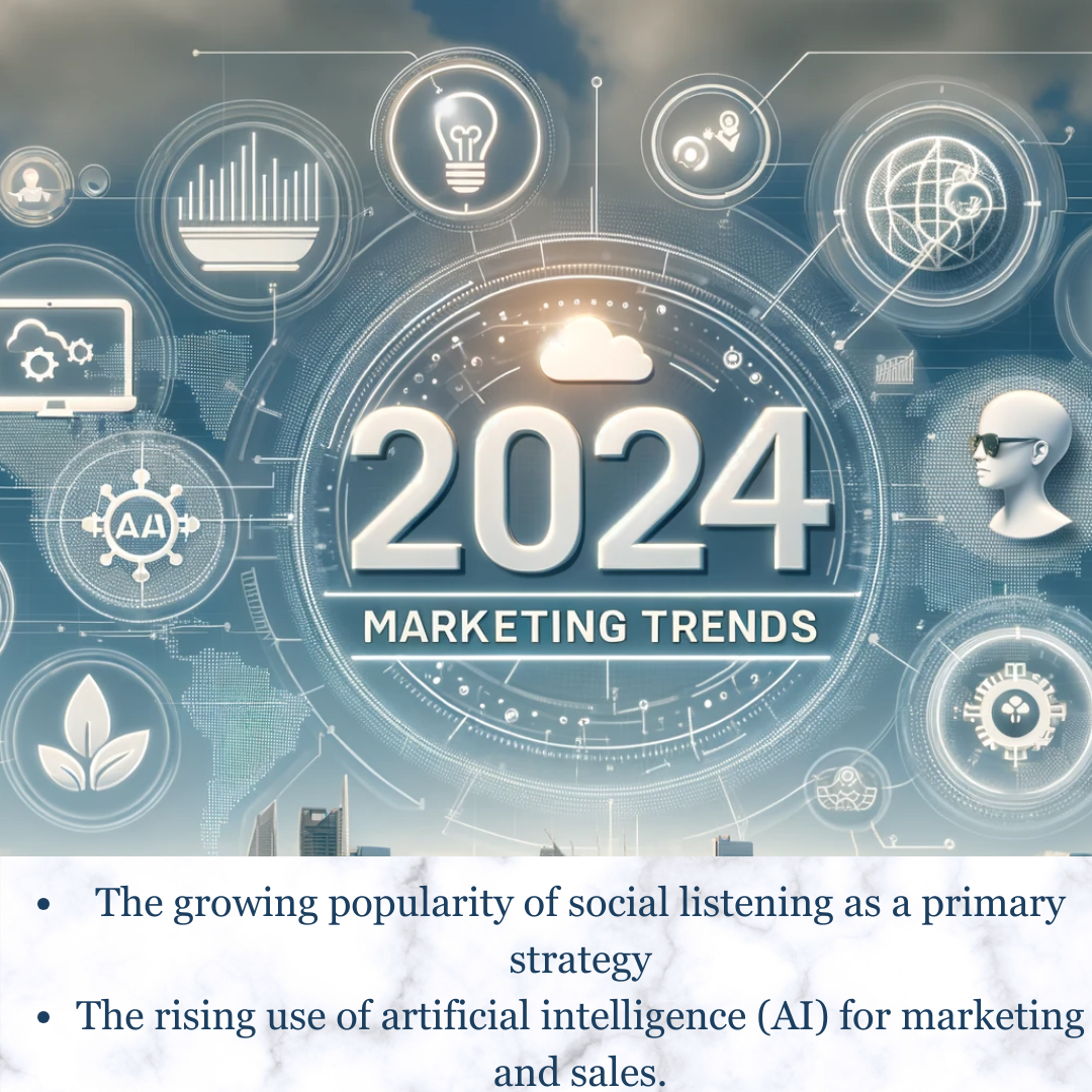 The second trend is the rising use of artificial intelligence (AI) for marketing and sales. AI helps marketers make decisions based on data and creates personalized experiences for customers.